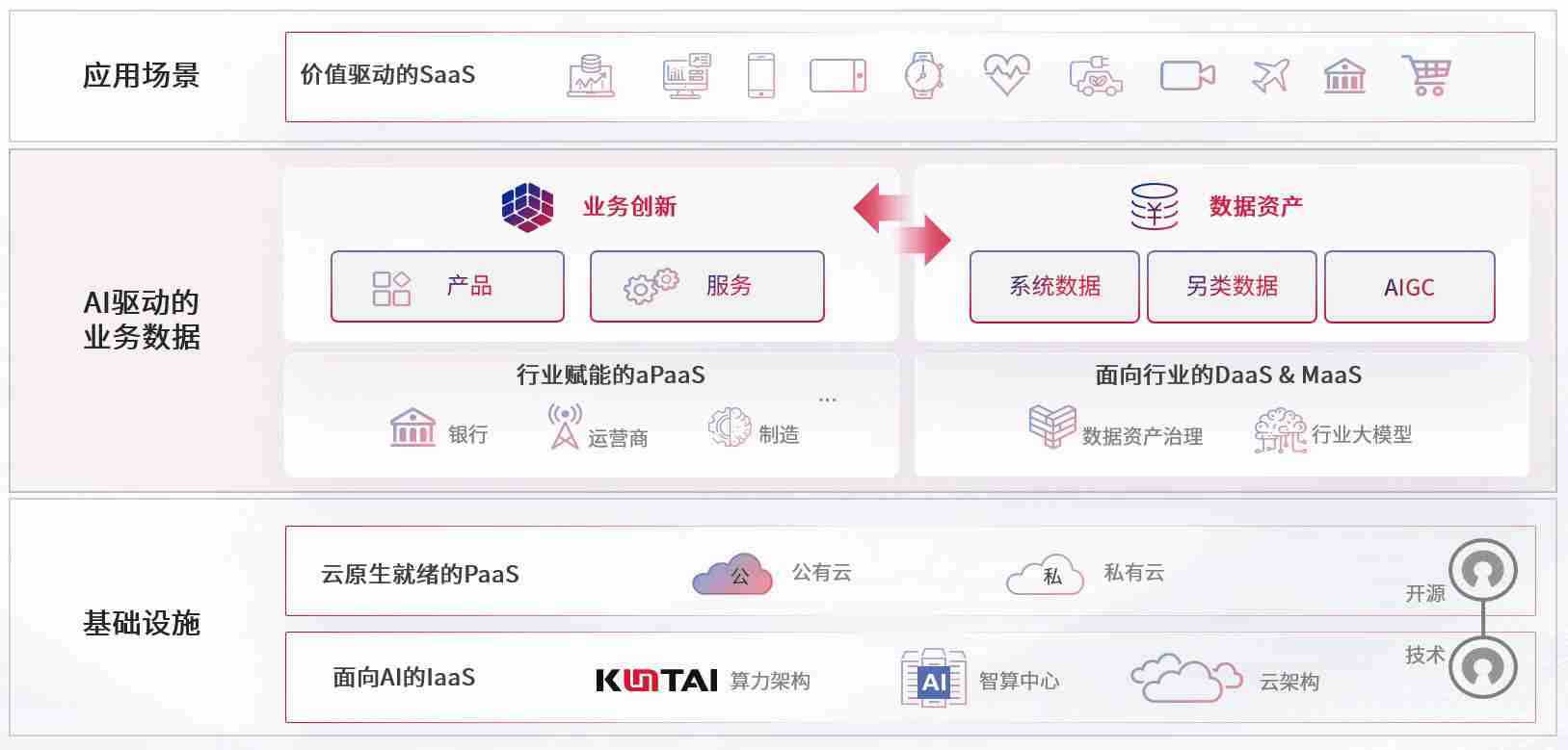 数字时代,,,,围绕企业数字化转型的关键要素,,,,KOO钱包数码开创性的提出数云融合战略和技术体系框架,,着力在云原生、、数字原生、、、AI原生和信创产业上架构产品和服务能力,,,,为处在不同数字化转型阶段的快消零售、、、、汽车、、金融、、、医疗、、政企、、、教育、、运营商等行业客户提供泛在的敏捷IT能力和融合的数据驱动能力,,构建跨界融合创新的数字业务场景和新业务模式,,助力企业级客户建立面向未来的核心能力和竞争优势,,,全面推动社会的数字化、、、、智能化转型升级。。。。