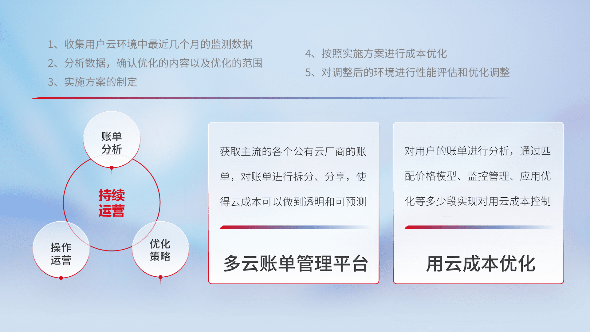 监控业务系统资源开销,,,对资源的消耗精确计量,,,,实现费用的透明化管理,,不断提升资源使用率,,,调整资源购买方式,,,,降低资源费用成本,,用云成本可预测、、、用云费用可优化,,,,云资源配额有据可依。。